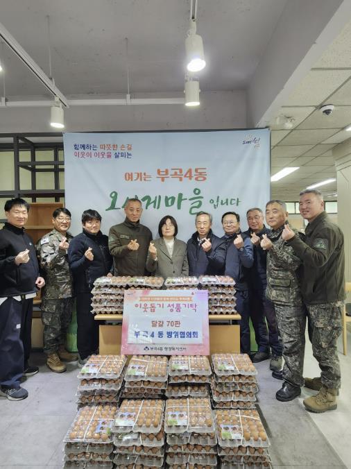 부곡4동 방위협의회는 매년 달걀과 성금 기탁 등 다양한 나눔 활동을 통해 지역사회 이웃사랑을 지속적으로 실천하고 있으며, 이번에 기탁된 물품은 관내 저소득 주민에게 전달될 예정이다.