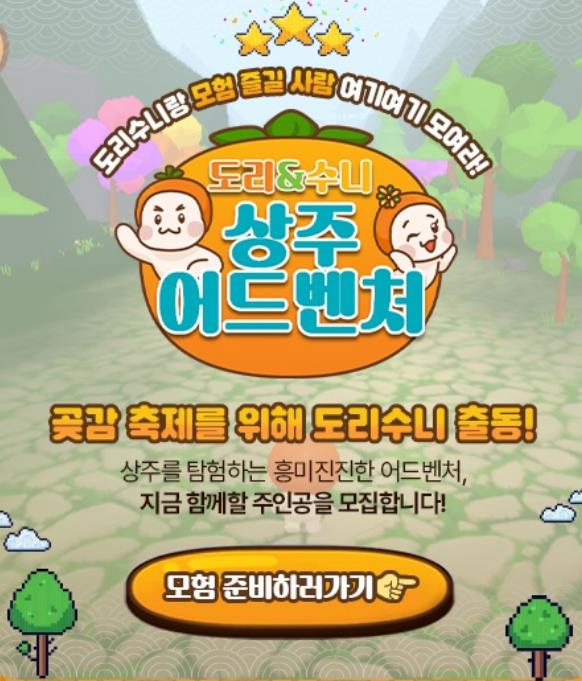 ‘도리와 수니의 상주 어드벤처’는 상주시 공식 캐릭터를 활용한 온라인 미션형 게임으로, 관광지와 곶감·농특산물 등 상주의 매력을 미션 체험을 통해 전달하며, 완료자에게는 디지털 굿즈 이모티콘을 제공한다.