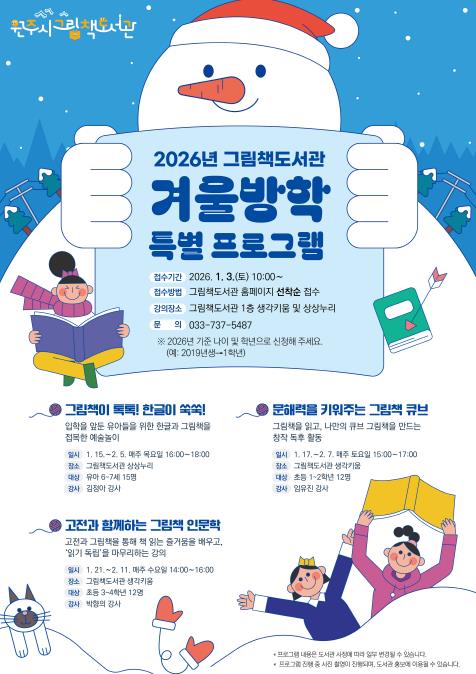 이훈주 도서관장은 “겨울방학 동안 아이들이 도서관에서 책과 함께 의미 있는 시간을 보낼 수 있길 바란다”라고 말했다.