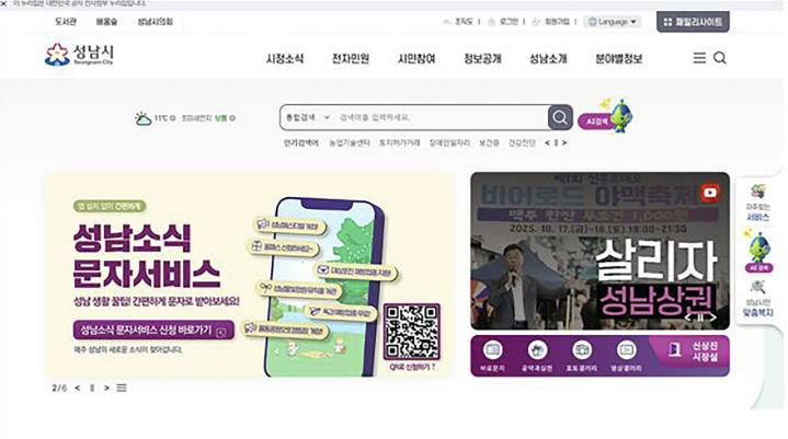 새롭게 개편하는 성남시 홈페이지는 이번 지능형 검색 기능을 포함해 △직관적 디자인 △중복 메뉴와 접근 단계 축소 △참여 소통 기능 강화 등 시민 중심으로 개선된다.