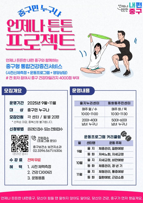 서울 중구가 구민 모두 체감할 수 있는 맞춤형 건강증진 통합관리 서비스 '중구민 누구나 언제나 튼튼 프로젝트'를 본격 추진한다.