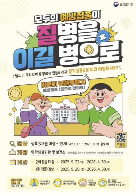 ‘25-26절기 인플루엔자 무료 지원 대상자는 올해 생후 6개월 이상 13세 어린이(2012.1.1.~2025.8.31.출생자)이며, 임신부는 임신주수와 상관없이 임신 여부를 확인할 수 있는 서류(산모 수첩 등)를 제시하면 된다.