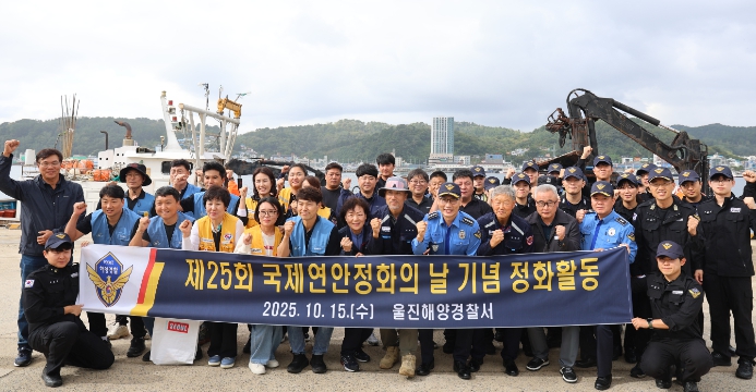 이번 정화활동은 울진해양경찰서를 비롯하여 울진군, 한국해양구조협회, 클린오션봉사단, 자원봉사자 등 5개 기관 및 단체 약 70여 명이 참여해 폐어구 등 연안에 방치된 각종 쓰레기 약 5톤을 수거했다.