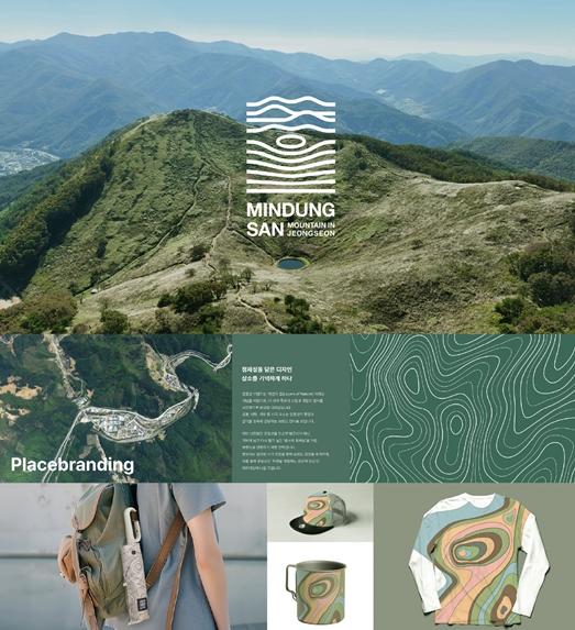 민둥산 브랜드는 산, 물, 바람, 구름, 풍경의 겹 -‘자연의 겹(Layers of Nature)’을 주제로 한 장소 브랜드로 정선 민둥산 풍경을 곡선 ‘능선의 리듬, 억새의 생동감, 돌리네의 깊이, 하늘의 여백’이 서정적으로 중첩되는 ‘감성의 레이어’로 표현한 것이 특징이다.