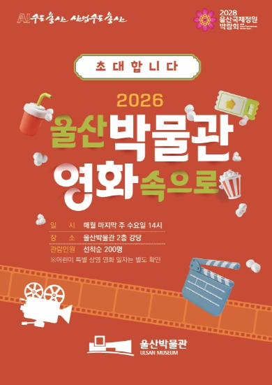 울산박물관 관계자는 “영화 상영 프로그램을 통해 박물관을 더욱 친근하게 경험할 수 있는 문화 공간으로 만들고, 일상에서 문화를 즐기는 ‘유(U)잼도시 울산’의 매력을 시민들과 공유하고자 한다”며 “많은 시민들이 박물관에서 영화와 전시를 함께 즐기시길 바란다”고 말했다.