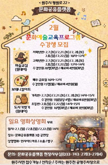 특히 평일에 운영될 예정이었던 마술교실은 참여자의 편의를 고려해 주말 수업으로 변경됐다. 해당 강좌는 설 연휴 주간을 제외하고 매주 토·일요일에 진행된다.
