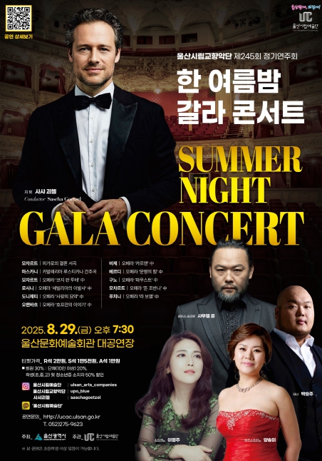 울산시립예술단 관계자는 “시민에게 한 여름밤 잊지 못할 추억을 선사하기 위해 이색적으로 마련되는 정기연주회에서는 오페라 명곡뿐만 아니라 세계적인 성악가의 연주를 직접 감상할 수 있는 특별한 무대가 펼쳐질 것”이라며 “누구나 부담 없이 즐길 수 있는 이번 음악회에 시민 여러분들의 많은 관심과 참여를 바란다”라고 말했다.