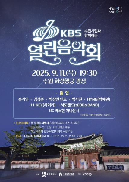 광복 80주년, 시 승격 76주년(8월 15일), 제62회 시민의 날(10월 10일)을 기념해 열리는 이날 열린음악회에는 가수 송가인, 김장훈, 박상민 밴드, 박서진, HYNN(흰), 그룹 H1-KEY(하이키), 서도밴드(sEODo BAND) 등이 출연한다.