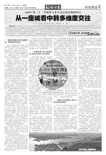 울산시에 따르면 환구시보는 지난달 31일자 신문(중국어·영문판 지면)에서 에이펙(APEC) 정상회의 심층(IN-DEPTH) 부문(섹션) 전면을 할애해 ‘다리의 도시(A CITY OF BRIDGES)’라는 제목으로 울산 특집 기사를 실었다.