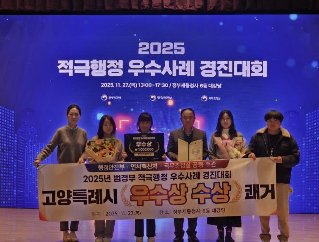 전국 최초로 시행된 이 사례는 2025년 상반기 고양시 적극행정 우수사례 경진대회에서 대상을 수상한 데 이어, 지난달 행정안전부·국무조정실·인사혁신처가 공동 주관한 ‘2025 적극행정 경진대회’에서 우수상(행정안전부 장관상)을 수상했다.