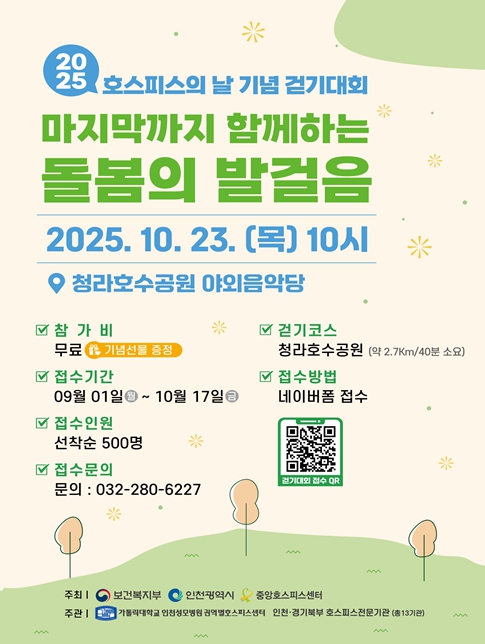 신병철 시 보건복지국장은 “호스피스·완화의료는 삶의 마지막 순간까지 환자와 가족의 존엄을 지켜주는 소중한 의료 서비스”이며, “이번 걷기대회가 시민들과 함께 삶과 죽음의 의미를 성찰하고, 호스피스에 대한 긍정적 인식을 확산하는 계기가 되길 바란다”라고 말했다.