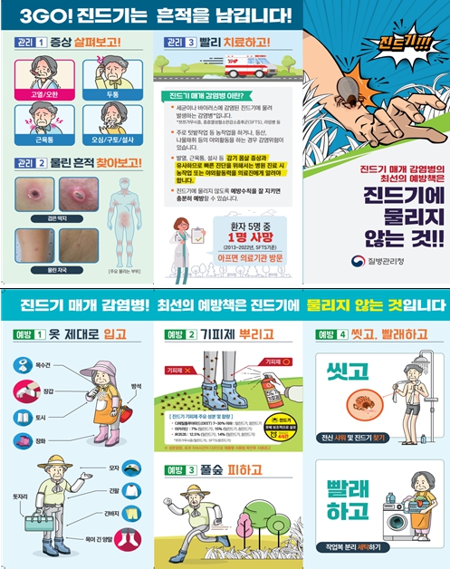 울산시는 감염병 예방을 위해 ▲야외활동 전 노출을 최소화할 수 있는 복장 입기(밝은색 긴 옷, 모자, 목수건, 목이 긴 양말, 장갑 등), 진드기 기피제 사용하기 ▲야외활동 중 풀밭에 앉을 때 돗자리 사용하기, 풀 위에 옷 벗어놓지 않기 ▲야외활동 후에는 귀가 즉시 옷은 털어서 세탁하기 등을 당부했다.