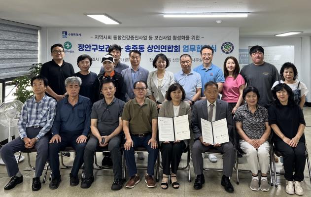송죽동 상인연합회 사무실에서 열린 이날 협약식에는 김정원 장안구보건소장, 건강관리과장, 송죽동 상인연합회 회장, 사무국장, 상인회 회원 등 20여 명이 참석했다.
