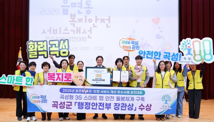 곡성군은 ‘스마트 지도(Smart)·속도(Speed)·안전(Security)’을 핵심으로 하는 ‘곡성형 3S 스마트맵 안전돌봄 사업’으로 대상을 받았다.