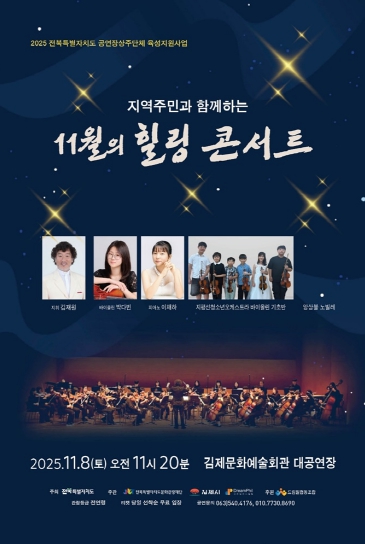 이번 공연에서는 드림필하모닉오케스트라 35인과 중창단‘앙상블 노빌레’, 그리고 김제청소년오케스트라가 함께하며 세대와 지역이 어우러지는 풍성한 무대를 선사할 예정이다.
