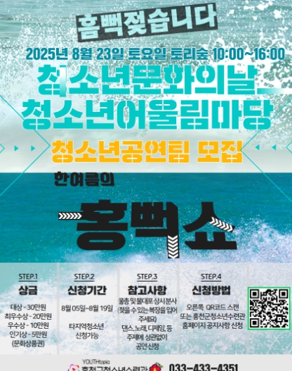 신영재 홍천군수는 “청소년과 지역 주민들이 건전한 여가 문화를 즐기며 무더위를 날리고 스트레스를 해소하는 활기찬 시간이 되길 바란다”라고 말했다.