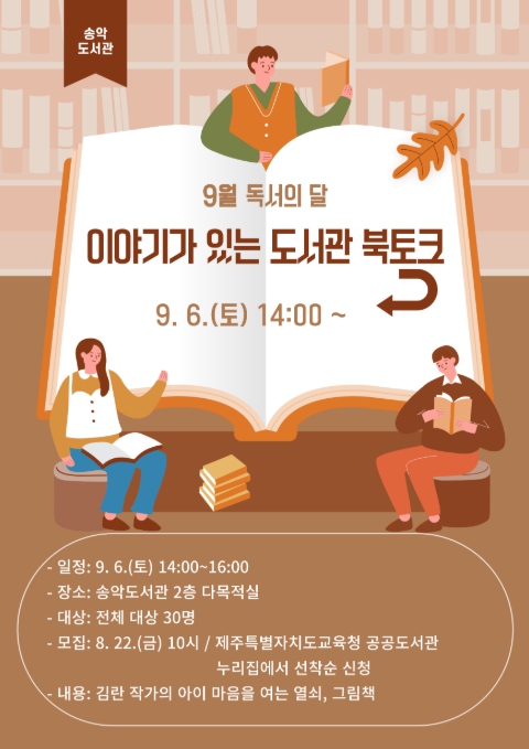 시티트리뷴 - 제주도교육청 송악도서관, 9월 ‘이야기가 있는 도서관 북토크’ 참가자 모집