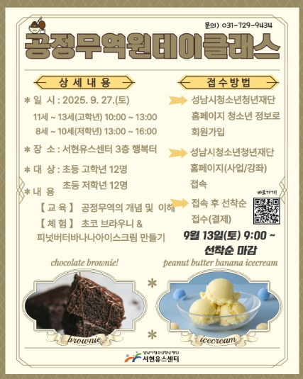 공정무역원데이클래스 참가 신청은 참가 포스터 내의 QR 및 성남시청소년청년재단 홈페이지를 통해 가능하다.