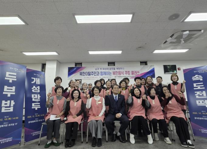 이번 쿠킹클래스는 여성분과(위원장 김명순)에서 준비한 행사로 개성만둣국, 두부밥, 속도전떡, 잡채, 배추전 등 북한 주민들의 일상과 명절에 먹던 대표 음식들을 함께 만들어 보면서, 단순한 요리 체험을 넘어 음식에 담긴 북한의 생활사와 개인의 경험담을 자연스럽게 나누는 소통의 시간이 됐다.