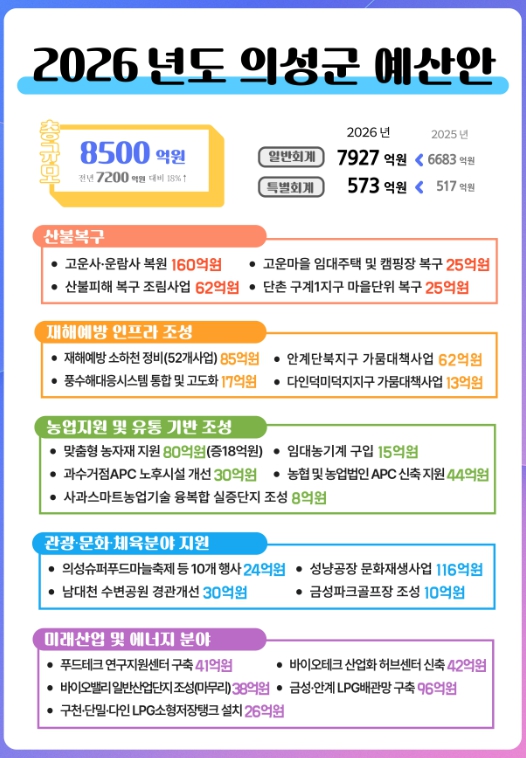 한편 2026년 예산안은 의성군의회의 심의를 거쳐 오는 12월 11일 최종 확정될 예정이다.