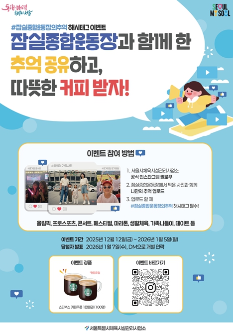 잠실종합운동장은 지난 40여 년간 아시안게임, 올림픽, 프로스포츠, 콘서트, 페스티벌, 마라톤 등 대한민국의 굵직한 문화·체육적 사건들이 펼쳐진 공간으로, 시민 개개인의 추억 역시 도시 문화유산으로서 중요한 가치를 지닌다. 본 이벤트를 통해 수집된 사진과 사연은 향후 사업소 디지털 아카이브 콘텐츠 제작 시 참고 자료로 활용될 예정이다.