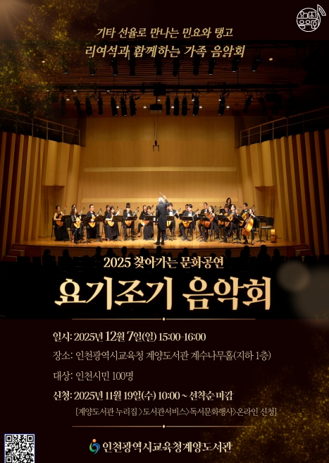 이번 공연은 ‘리여석과 함께하는 가족 음악회’로 진행되며, 리여석 기타오케스트라가 클래식 명곡, 민요, 탱고 등 다양한 장르의 곡을 선보인다.