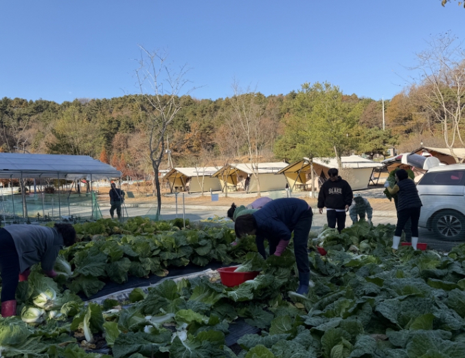 이번 행사는 공단 직원들이 굿뜨래웰빙마을 글램핑장에서 직접 재배한 친환경 배추 200여 포기를 기부하기 위해 마련됐다.