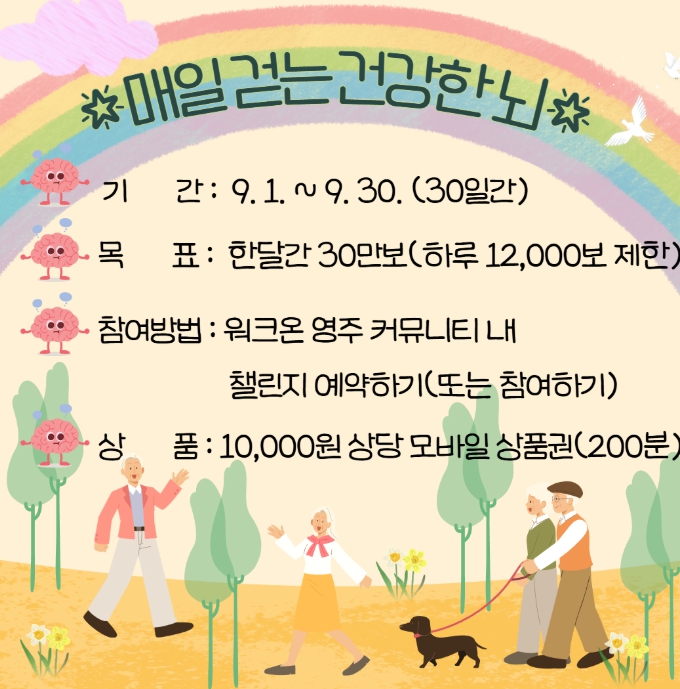 영주시보건소 관계자는 “이번 걷기 챌린지를 통해 시민들이 일상속에서 즐겁게 걷기를 실천하고, 치매 예방을 위한 생활 습관이 시민들에게 자연스럽게 스며들 수 있기를 바란다”고 말했다.