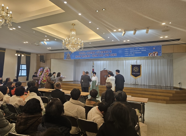 이날 행사에는 관내 기관·단체장을 비롯해 문화원 회원 등 250여 명이 참석한 가운데, 하동문화원 부설 문화학교의 식전 공연을 시작으로 시상식, 송년사와 축사 순으로 진행되며 한 해를 뜻깊게 마무리하는 시간을 가졌다.