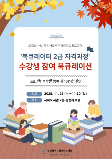 김정남 사하도서관장은 “수강생이 직접 기획하고 참여하는 북큐레이션을 통해 더 많은 시민이 배움의 즐거움을 경험하고, 도서관과 함께 성장하는 계기가 되길 바란다”고 말했다.