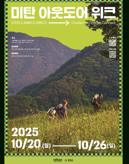 이번 행사는 2025년 행정안전부'생활권 단위 로컬 브랜딩 활성화 사업' 공모에 선정된 ‘미탄 아웃도어 빌리지-로드트립 & 트레킹 거점마을’ 사업의 하나로, ‘도전하고, 회복하고, 연결되고 →Challenge, Charge, Connect’라는 주제 아래 진행된다.