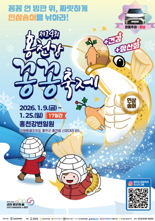 (재) 홍천문화재단 전명준 이사장은 “안전을 최우선 가치로 삼아 인삼 송어 등 홍천의 고유 자원을 기반으로 지역과 상생하는 축제를 추진하겠다”라며 “많은 분이 홍천에서 겨울의 즐거움과 새해의 에너지를 함께 담아가시길 바란다”라고 말했다.