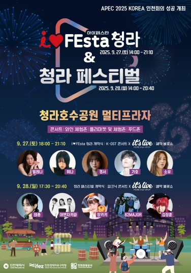 ‘I♥FEsta’는 ‘IFEZ(인천경제자유구역)’과‘Festa(축제)’를 결합한 명칭으로, 글로벌 문화 중심지 IFEZ를 대표하는 K-Culture 축제 브랜드다. 지난‘I♥FEsta 영종’에 이어 올해 마지막으로 열리는 이번 페스티벌은 K-OST와 대중음악을 테마로 다채로운 무대를 선보인다.