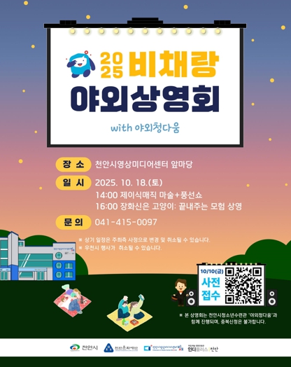 안동순 천안문화재단 대표이사는 “지난해 야외상영회에 보내주신 뜨거운 관심 덕분에 올해도 온 가족이 함께 즐길 수 있는 프로그램을 준비했다”며 “앞으로도 다양한 영상문화를 즐길 수 있는 기회를 제공할 것”이라고 말했다.