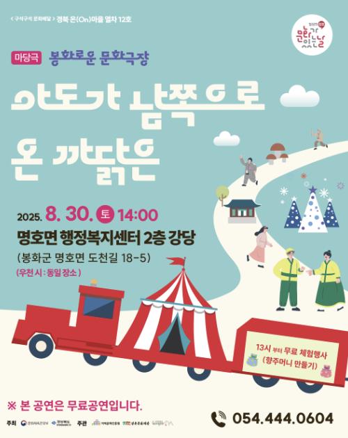 이번 사업은 문화체육관광부와 경상북도가 주최하고, 경북문화재단과 지역문화진흥원, (사)문화창작집단 공터다가 주관하는 2025년 문화가 있는 날 ‘봉화로운 문화극장’ 사업의 일환으로 진행된다.