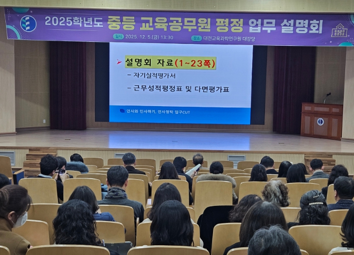 대전시교육청 조진형 중등교육과장은 “앞으로도 공정하고 투명한 인사행정 구현과 청렴한 인사문화 정착을 위해 시기별 인사업무 홍보 강화와 예측 가능한 인사자료 제공 등을 통해 교원이 체감하는 인사 만족도를 높이고, 나아가 학교 교육력이 한층 더 도약할 수 있는 인사문화를 확실히 정착시키겠다”고 밝혔다.
