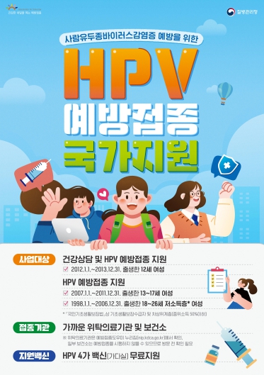 HPV 무료 예방접종 대상자는 12~17세(2007~2013년생) 여성 청소년과 18~26세(1998~2006년생) 저소득층 여성(기초생활수급자 및 차상위계층)이다.