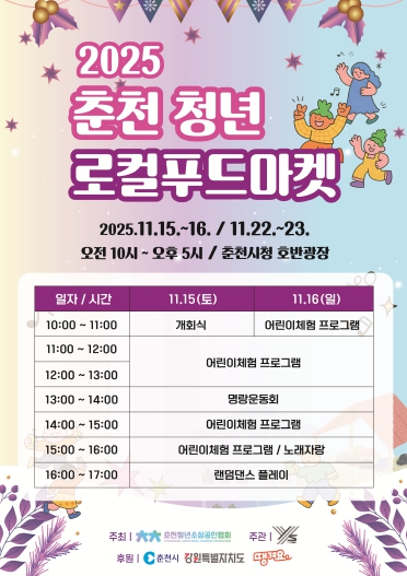 춘천시가 오는 15~16일, 22~23일 이틀씩 2주간 ‘2025 춘천 소상공인 상생 직거래장터’를 연다.