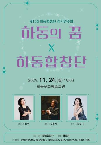 11월의 겨울밤, 하동합창단의 따뜻한 선율과 함께 지역의 꿈을 노래하는 이 특별한 무대에서 관객들은 아름다운 자연과 사랑이 가득한 공동체 정신을 느끼며, 잊지 못할 소중한 추억을 만들어 갈 것이다.