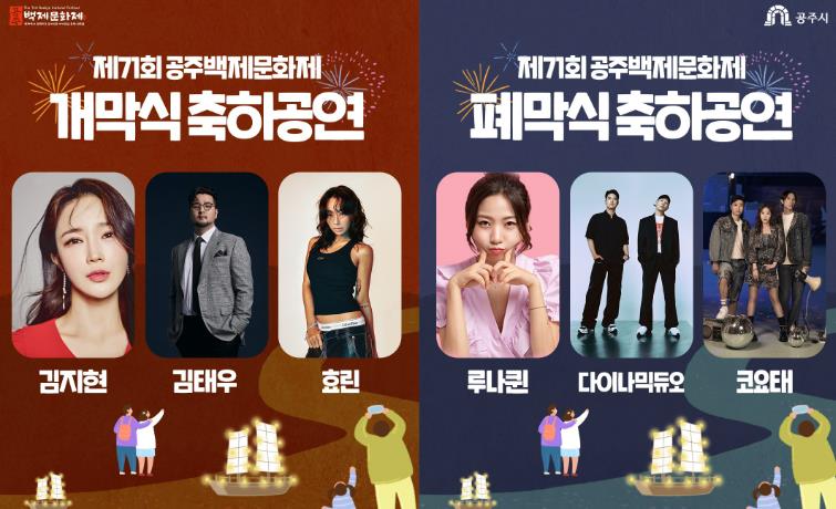 공주시에 따르면, 오는 10월 3일부터 12일까지 열리는 이번 축제 기간에는 개막식과 폐막식은 물론, 주요 프로그램 무대마다 국내 정상급 가수들이 출연해 축제의 흥을 한층 끌어올린다.