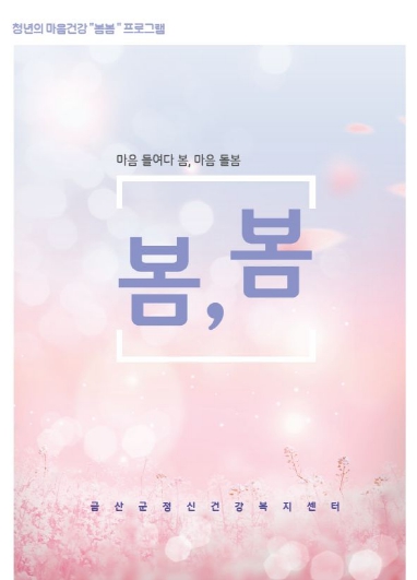 이 프로그램의 제목에는 ‘마음을 들여다 봄, 나를 돌봄’의 의미가 담겼으며 지역사회 내 우울감, 불안, 심리적인 어려움을 가지고 있는 청년 우울 고위험군의 정신질환과 자살을 예방하기 위해 추진된다.