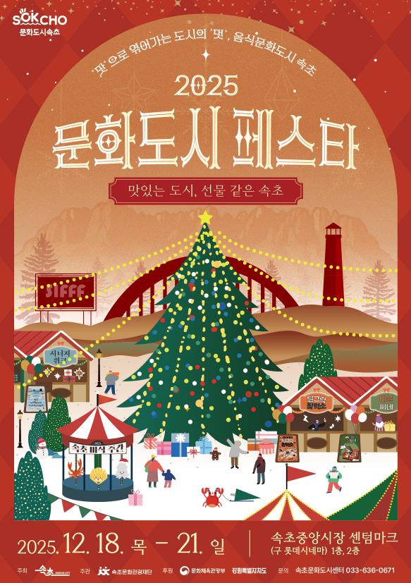 이태훈 속초문화관광재단 사무국장은 “이번 페스타는 대한민국 문화도시가 시민에게 전하는 연말 선물 같은 행사”라며 “음식문화도시 속초의 비전을 지속적으로 알리고 더욱 확장해 나가겠다”고 밝혔다.