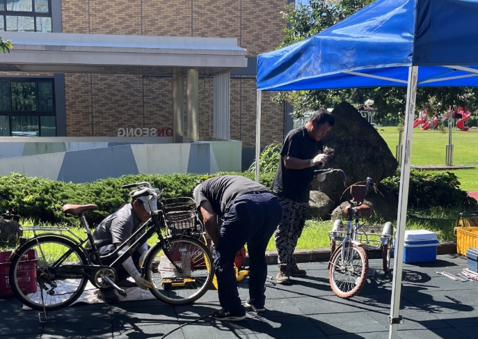 수리 대상 자전거는 모두 15대로 브레이크 점검, 체인 정비, 바퀴 교체, 타이어 공기 주입 등 안전한 주행을 위한 다양한 정비가 이루어졌다.