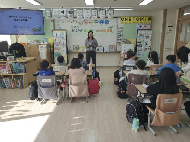 이번 교육은 1학년 교과과정 ‘우리 모두의 지구’와 연계해 실시됐으며, 유용미생물(EM)이 환경에 미치는 긍정적인 영향과 환경보호의 중요성을 어린이 눈높이에 맞춰 설명했다. 또한 메모리 게임과 EM 비누 만들기 체험을 함께 운영해 학생들의 관심과 참여도를 높였다.