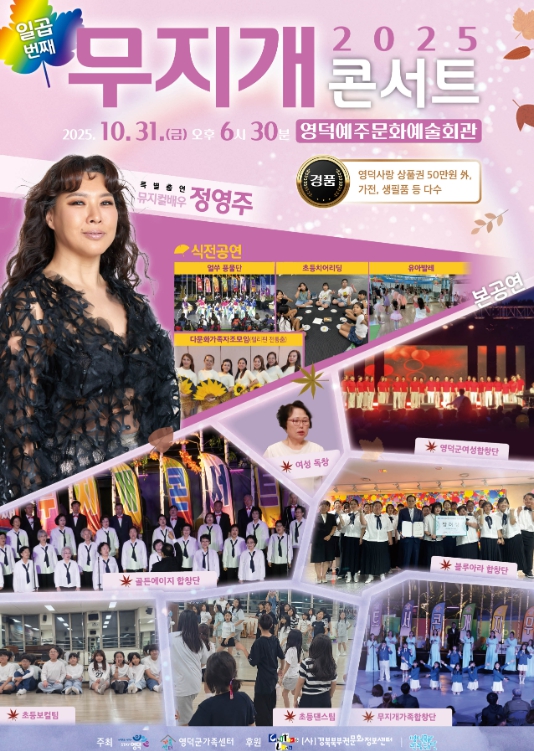 본 공연에는 지역의 60세 이상 남녀로 구성된 ‘골든에이지 합창단’의 합창과 독창과 중창, 영덕군 가족으로 구성된 ‘무지개 합창단’, 관내 초·중학생으로 구성된 ‘초등 보컬팀’과 ‘초등 댄스팀’의 무대가 온 가족을 아우르는 공연으로 따뜻함을 선물할 예정이다.