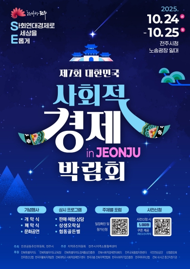 전주시는 오는 24일과 25일 이틀간 시청 앞 노송광장 일원에서 대한민국을 대표하는 사회적경제기업들이 대거 참여하는 ‘제7회 대한민국 사회적경제 박람회 in JEONJU’를 개최한다.