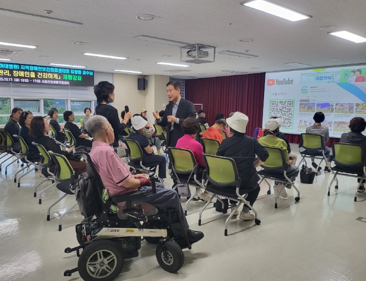 재활강좌는 인천지역 장애인보건의료센터장 김창환 교수(인하대병원 재활의학과)를 초빙해 장애인과 지역주민들을 대상으로 통증을 예방 및 관리하는 방법에 대해 개괄적으로 강의한 후 40분간 자유로운 질의응답을 갖는 방식으로 진행됐다.