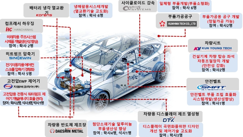 특히, 글로벌 자동차 부품기업인 지엠비코리아와 공동연구에 참여한 경남대 석사 과정 학생연구원 2명은 지엠비코리아 기술연구소에 연구원으로 채용됐으며, 이러한 경험이 올해 공동연구 재추진과 채용약정 체결로 이어졌다.
