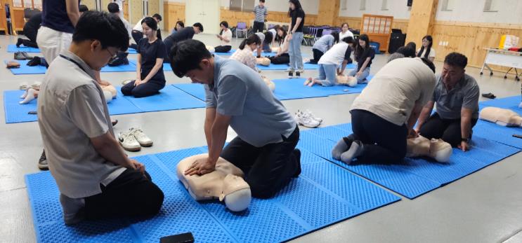 교육에는 전북대학교병원 응급의료센터 전문 강사진이 참여해 △심폐소생술 이론, △자동심장충격기 사용법 및 관리법, △심폐소생술 실습 등으로 진행됐으며, 참가자들은 교육용 심폐소생술 모형(애니 인형)을 활용해 직접 가슴압박과 AED 사용법을 체험해 응급상황에 대비한 실질적인 대응 능력을 기를 수 있었다.