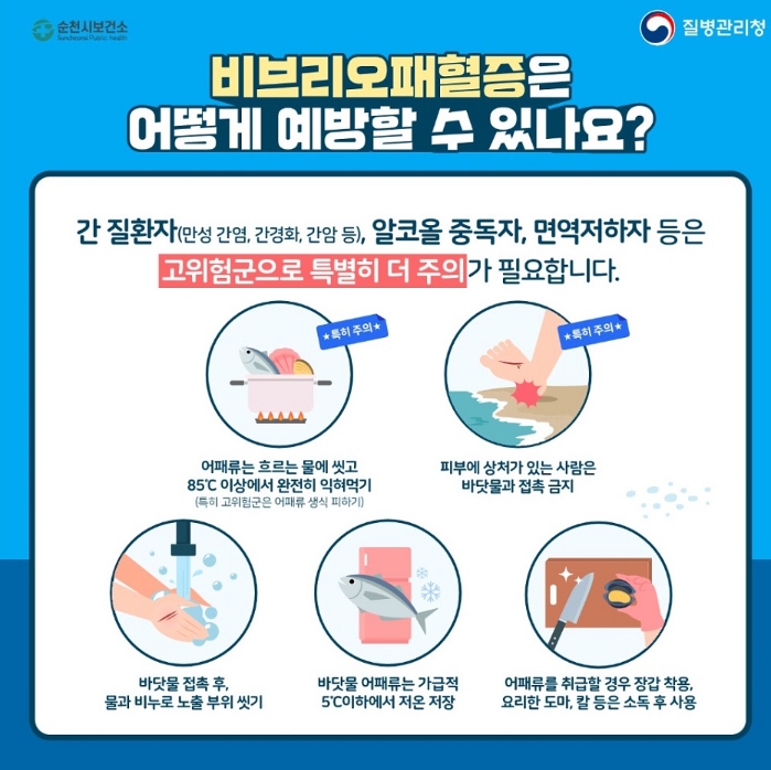 시 관계자는 “비브리오패혈증은 치명률이 50%에 달할 정도로 위험하므로 예방수칙을 반드시 준수해 달라”며 “특히 해안지역 주민과 간질환이나 당뇨병 등 만성질환자, 면역결핍환자는 고위험군인 만큼 더욱 각별한 주의가 필요하다”고 말했다.